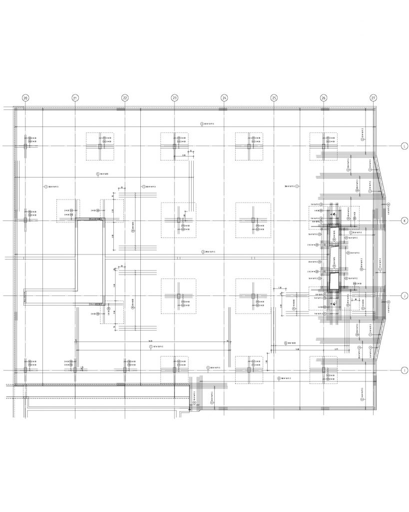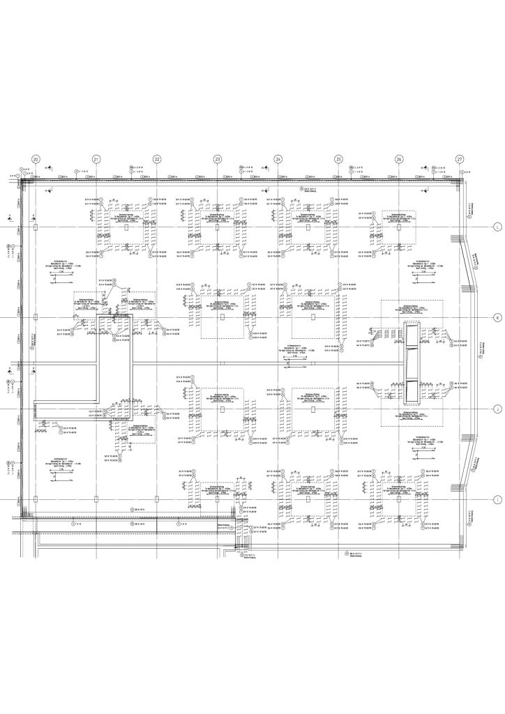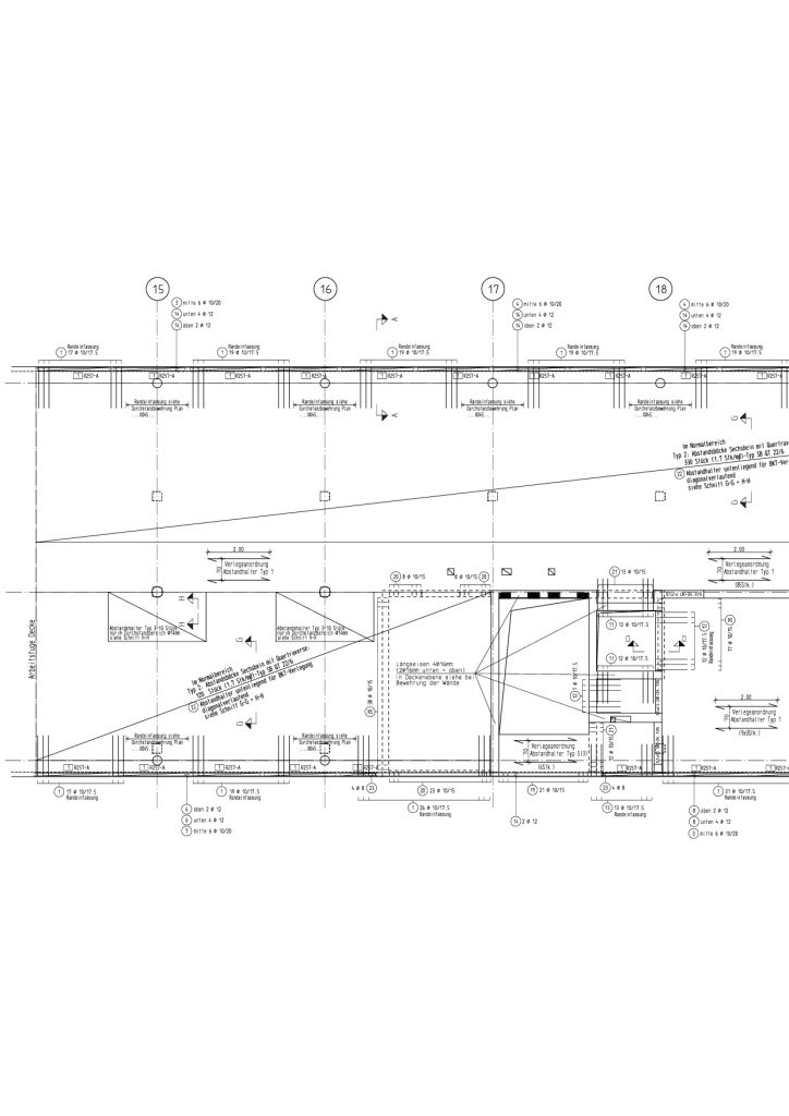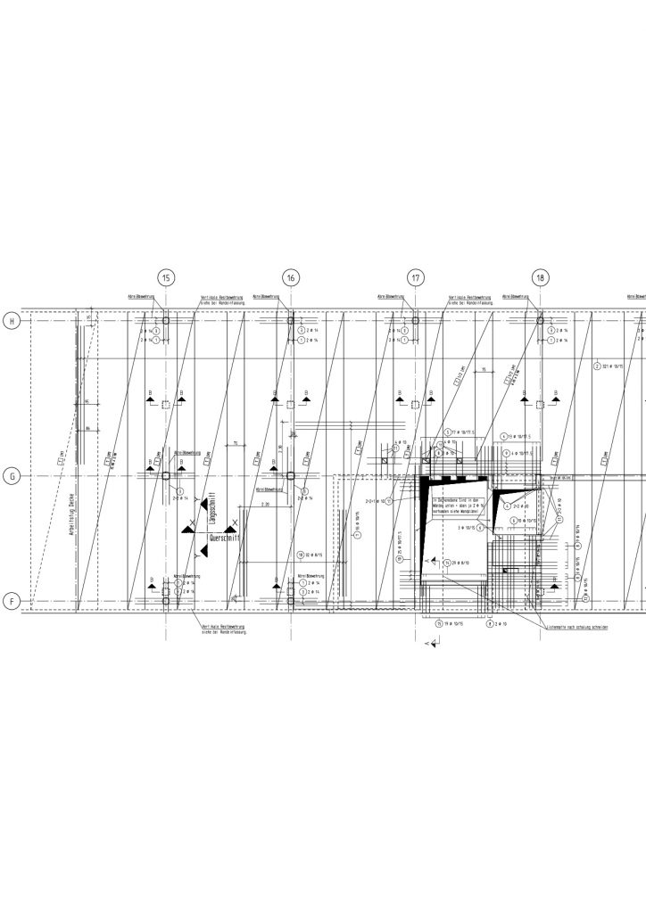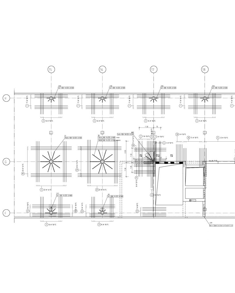 Ausschnitt aus der Decke über 6.OG (obere Lage/ zulagen + Durchstanzbewehrung)