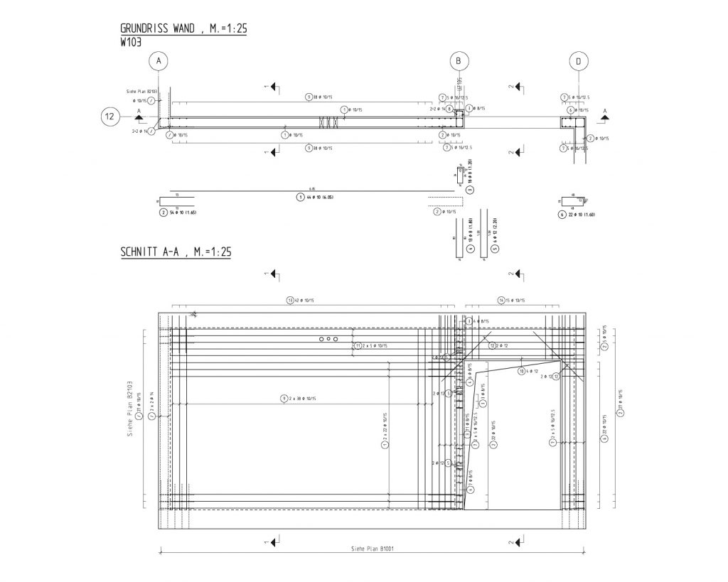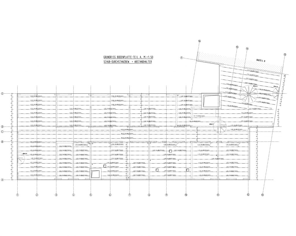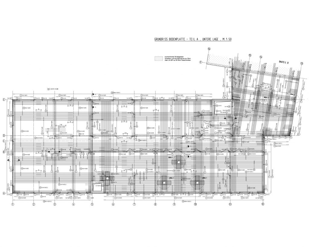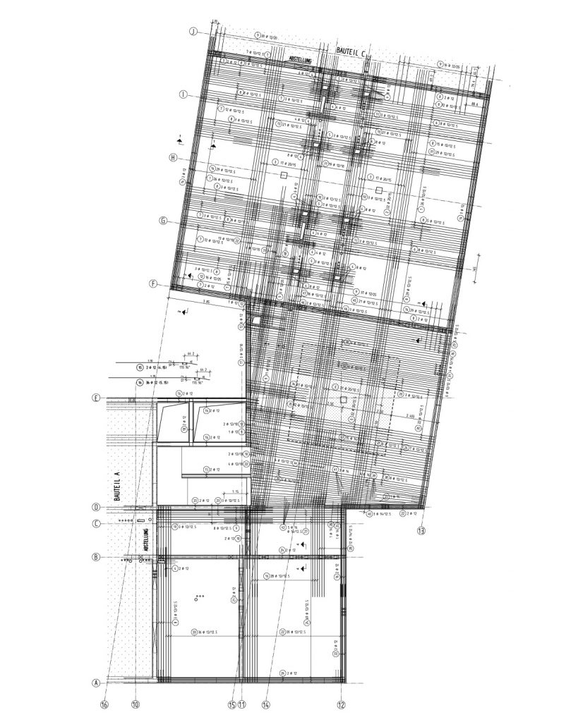 Wohnheim Bodenplatte (untere Bewehrung) Bodenplatte (Durchstanzbewehrung und Abstandshalter) Bodenplatte (obere Bewehrung) Stahlbetonwand Stahlkonstruktionen Decke (untere Bewehrung) Decke (obere Bewehrung) Decke (obere Bewehrung)